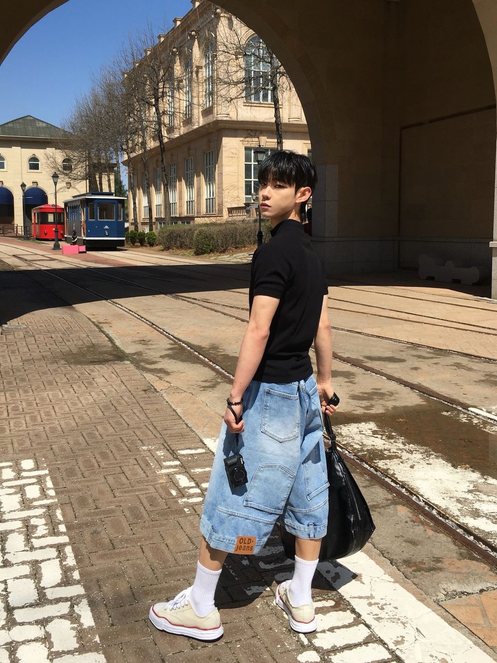反穿設計貼布牛仔七分短褲 百慕達短褲