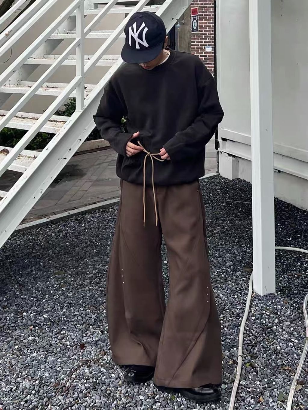 美式高級感鉚釘彎刀西裝解構 闊腿褲 彎刀褲