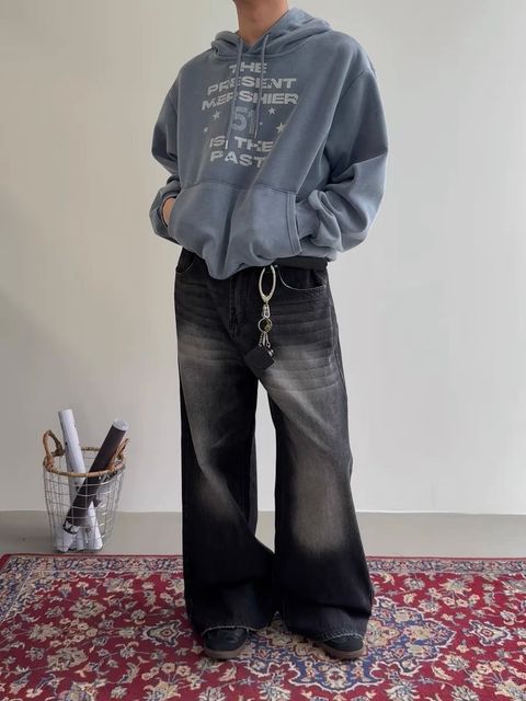 🇰🇷降落傘立體金屬釦設計牛仔長褲