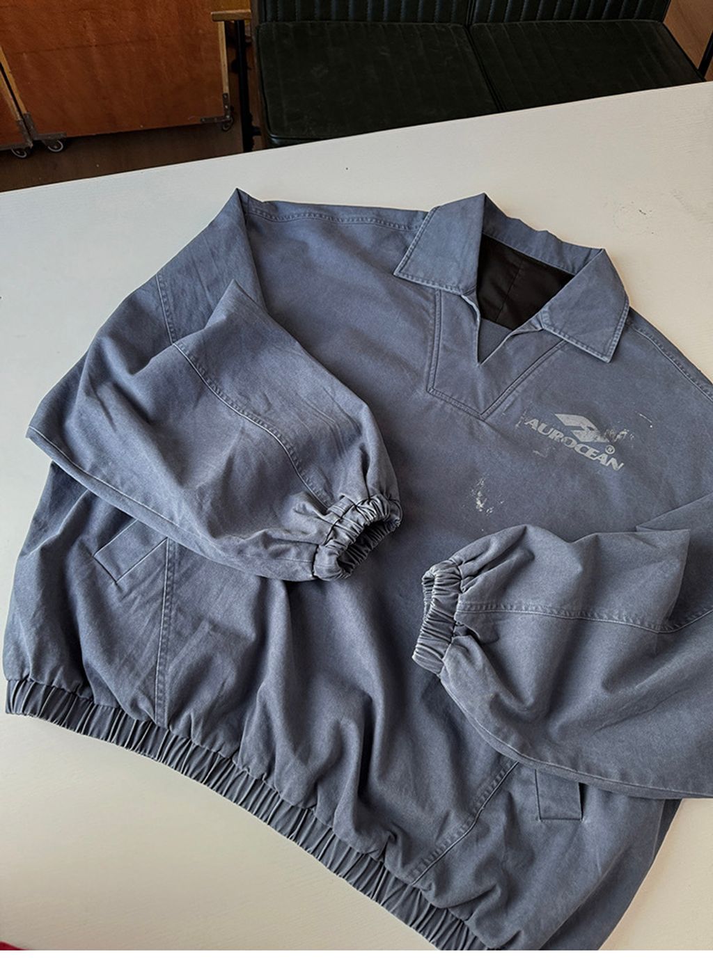 Aurocean 復古 灰藍水洗 套頭訓練服外套